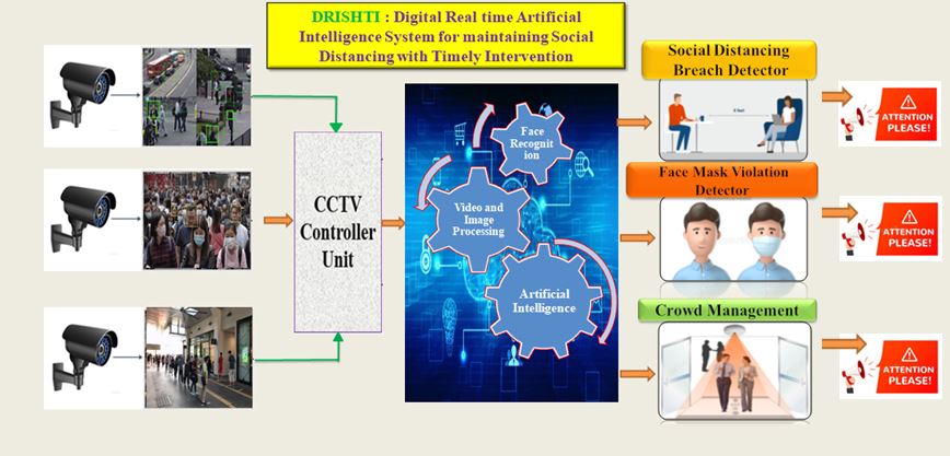 AI-powered Drishti for ensuring Social Distance DRISHTI is an AI driven indigenous, innovative and plug & play solution relying on Real Time Image recognition and Video Processing and is capable of detecting the instances of violations of Social Distancing, Face Mask wearing and if the number of persons at a place are more than the […]